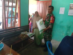 Babinsa Koramil 03/Pandan Dampingi Penyaluran Bantuan Sembako Untuk Warga Korban Bencana Banjir