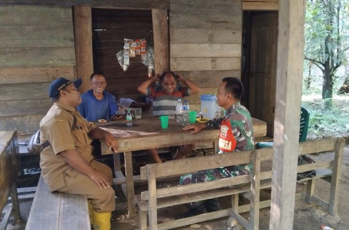 TAPTENG_Dalam menjalin keakraban dan keharmonisan dengan warga binaan,Sertu Adi Wiguna. melaksanakan kegiatan Komunikasi Sosial (Komsos) dan berkoordinasi dengan warga masyarakat....