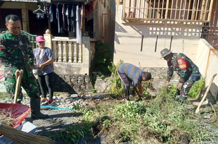 Tapteng-Babinsa Koramil 06/Kota Sibolga Kodim 0211/TT, Serda Hilman Purba,tampak semangat melaksankan gotong royong bersama warga masyarakat Binaan di Kelurahan Pancuran...