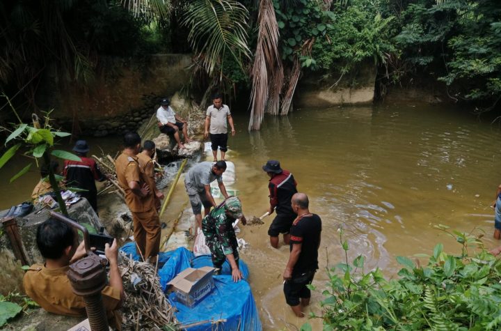Tapteng.Babinsa koramil 01/Barus Kodim 0211/TT Serka Herlinus Simbolon bersama warga masyarakat melaksanakan kegiatan gotong royong memperbaiki bendungan air yang jebol...