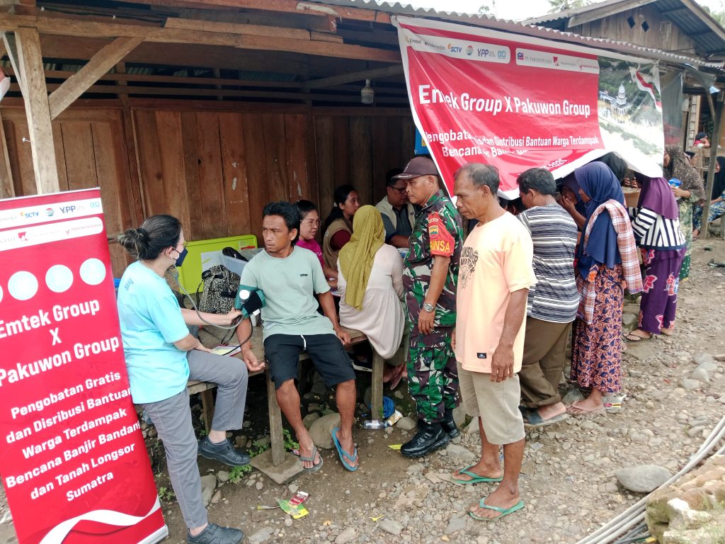 “Melalui pengobatan gratis dari Tim Medis Emtek group X ini diharapkan kondisi kesehatan warga pasca korban banjir selalu terjaga,” ucap Danramil 04/Pinangsori Kapten Inf Rusliadi.”