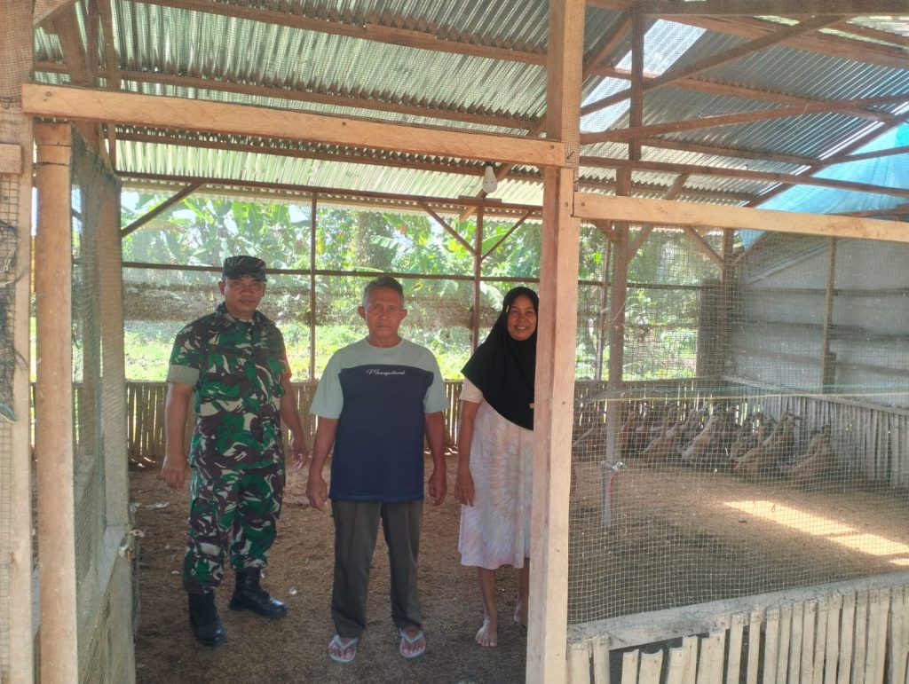 Kegiatan tersebut di laksanakan sebagai upaya mendukung program pemerintah dalam mewujudkan ketahanan pangan di wilayah binaan dalam kesempatan tersebut.Sertu.Abdulrajab.meninjau secara lansung bersama aparatur desa kondisi kandang dan jumlah populasi itik bertelur serta. hasil produksi telur yang di kelola oleh BUMDES tersebut..
