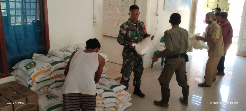 Di Kecamatan Sitahuis, Serda Ius Pasaribu selaku Babinsa bersama perangkat Kecamatan Sitahuis melakukan pendistribusian bantuan dari Bulog kepada masyarakat yang terdampak bencana alam longsor ,adapun bentuk bantuan tersebut berupa beras dan minyak goreng ,kegiatan ini bertujuan memastikan penyaluran bantuan berjalan tertib,aman dan tepat sasaran ,khususnya bagi korban bencana alam longsor.