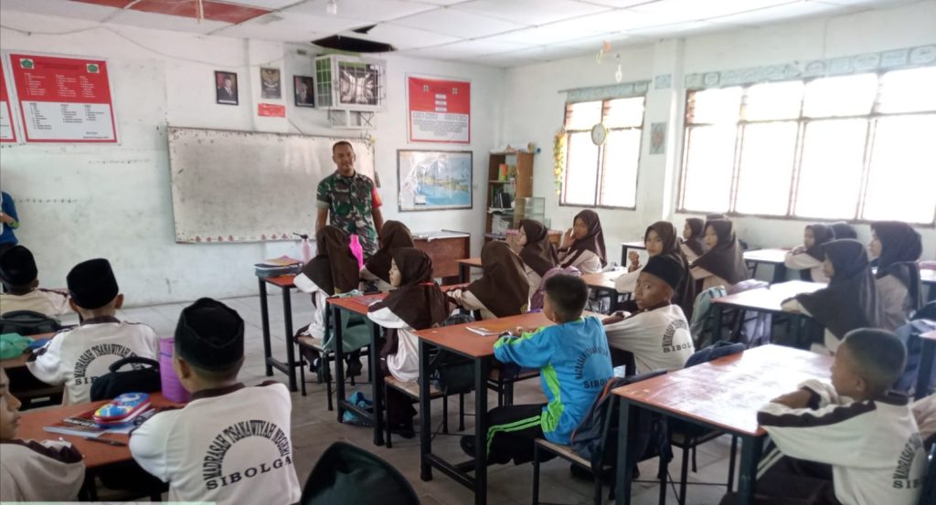 KOTA SIBOLGA – Babinsa Koramil 06/Kota Sibolga Serda Asrul Efendi Sihite memberikan materi Wawasan Kebangsaan dan Cinta Tanah Air kepada siswa-siswi MTS-N di Kecamatan Sibolga Selatan, Jumat (09/01/2026).