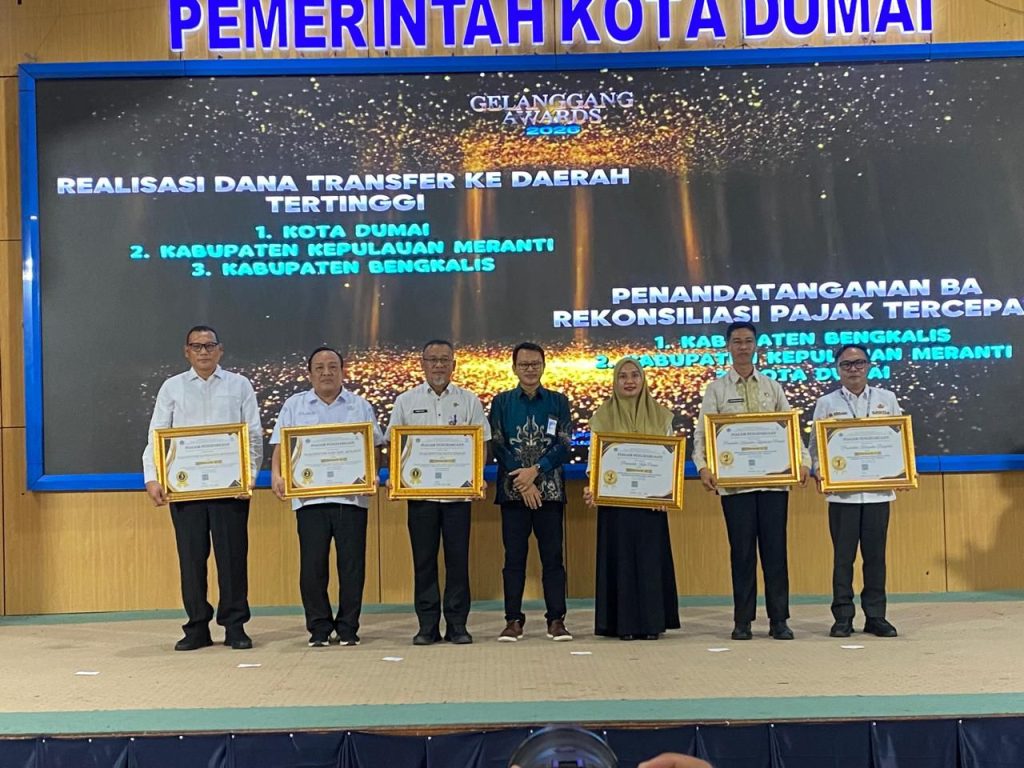Penghargaan tersebut diserahkan dalam ajang Gelanggang Award yang ditaja KPPN Dumai di Komplek Sri Bunga Tanjung, Kota Dumai, Rabu (29/4/2026). Penyerahan dilakukan oleh Kepala Kanwil DJPb Provinsi Riau, Adnan Wimbyarto, dan diterima oleh Sekretaris Daerah Kepulauan Meranti Sudandri Jauzah bersama Kepala BPKAD Fajar Triasmoko, mewakili Bupati Kepulauan Meranti H. Asmar.