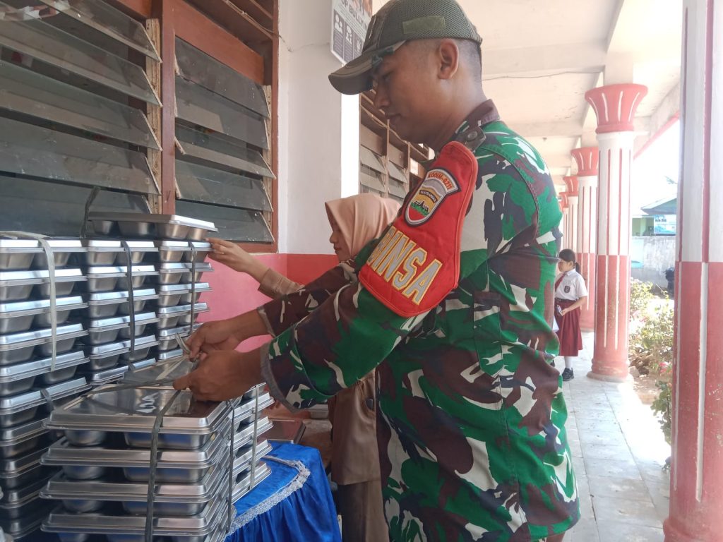 Tapteng-Babinsa Koramil 05/Kolang,Serda Charly Hutabarat melakukan pendampingan pembagian program Makan Bergizi Gratis(MBG)di Sekolah-Sekolah yang berada di Kecamatan Kolang Kabupaten Tapanuli Tengah ,Rabu (11/02/2026).