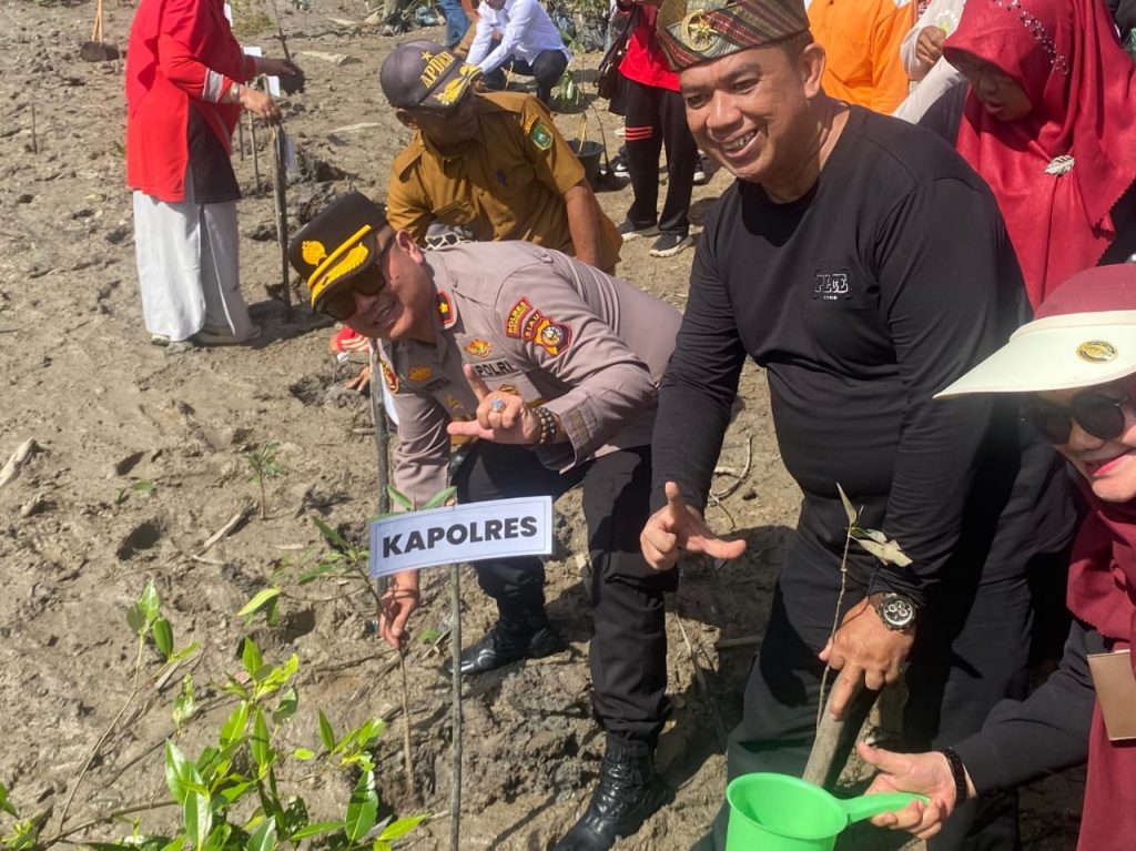 Seusai acara pembukaan, terlihat semua pihak terkait ikut menamam pohon mangrove secara bersama.***