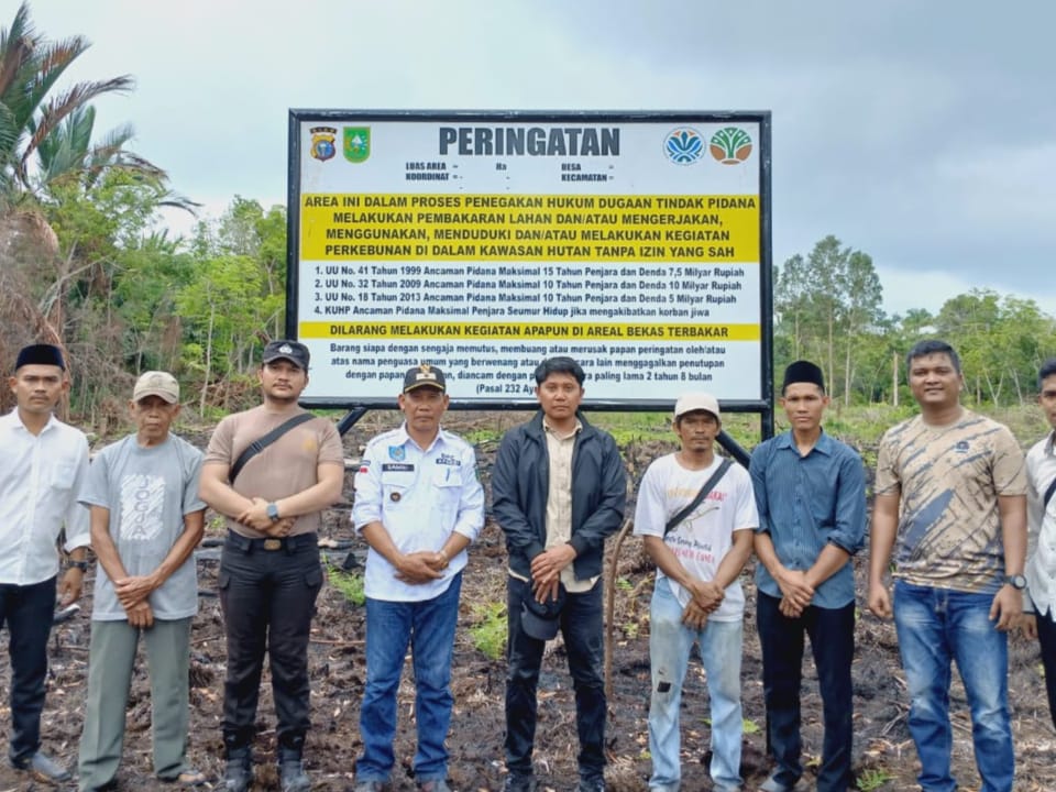 Pemasangan plang tersebut dilakukan di Dusun 2 Desa Tenan, pada titik lokasi yang sebelumnya diketahui terbakar pada Juli lalu. Pemasangan ini bertujuan sebagai tanda bahwa area tersebut masih dalam proses penegakan hukum terkait dugaan tindak pidana kebakaran hutan dan lahan (karhutla).
