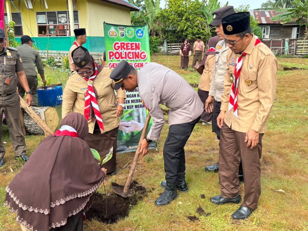Lidik24jam. Meranti,- Dalam rangka mendukung program pelestarian lingkungan hidup, Polsek Merbau, Polres Kepulauan Meranti, melaksanakan kegiatan Green Policing berupa penanaman bibit pohon di Desa Bagan Melibur, Kecamatan Merbau, Kabupaten Kepulauan Meranti, Jumat (23/1/2026).