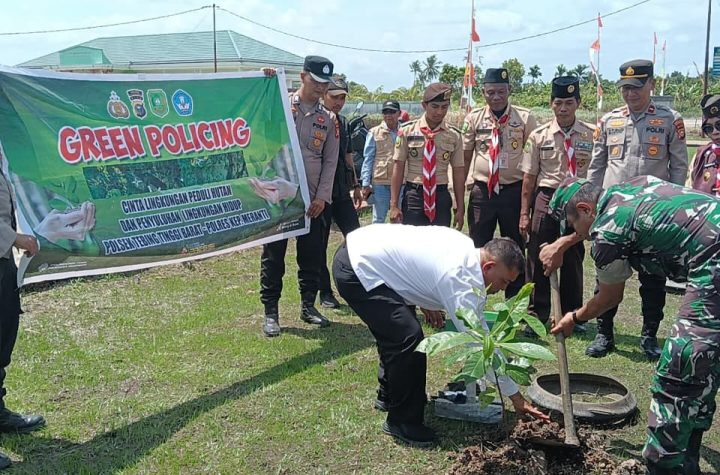 Sinergi Polsek Merbau Bersama Pramuka Tanam Pohon Dalam Progran Green Policing